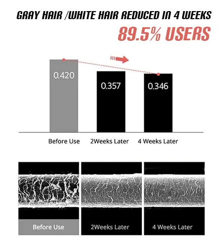 Clinically proven results of darkening the gray hair andim provement of hair volume after using 4 weeks.