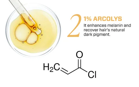 Acrolys is a natural active ingredient derived from the molecule Picroside II which allows to restore the natural hair color. The ingredient enhances melanin synthesis and thus may reverse the hair pigmentation process. It will turn the existing white hair black and protect you from further hair greying.