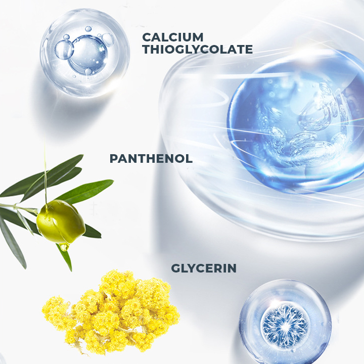 - Core ingredients: Calcium thioglycolate, Panthenol, Glycerin, Stearyl alcohol, Niacinamide, Italian helichrysum, Bisabolol, Yeast extract, Saffron extract